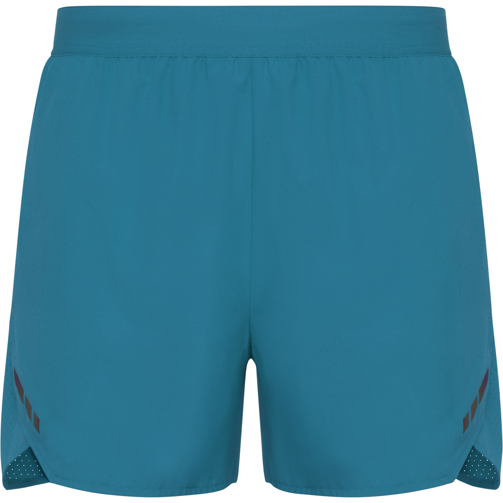 Short uomo da corsa traspiranti. Combinazione di tessuto leggero e microforato. Slip interni. Mini tasca laterale con zip invisibile. Girovita elasticizzato con cordoncino interno. Dettagli riflettenti sui lati anteriori. Certificazione GRS.